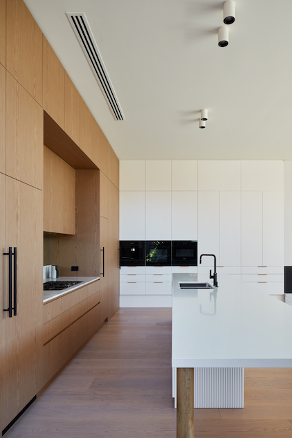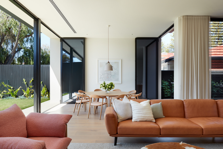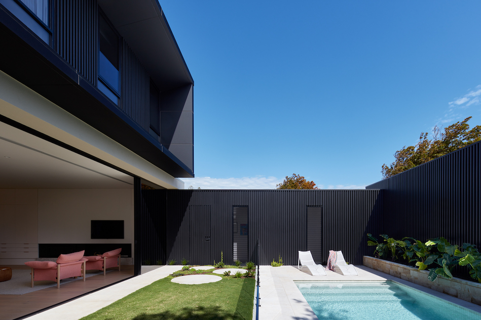 The team behind Moor Living continually strives to challenge accepted approaches towards residential architecture, particularly searching for efficiencies in the use of spaces. This home has been designed to enable the dining room to be transformed to an undercover outdoor dining space leaving more space for garden – and a stunning pool that is the backdrop for views from many of the rooms.